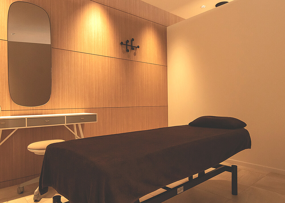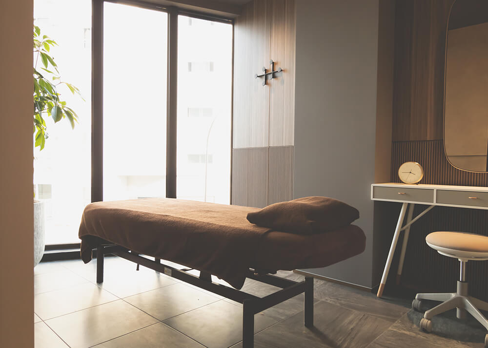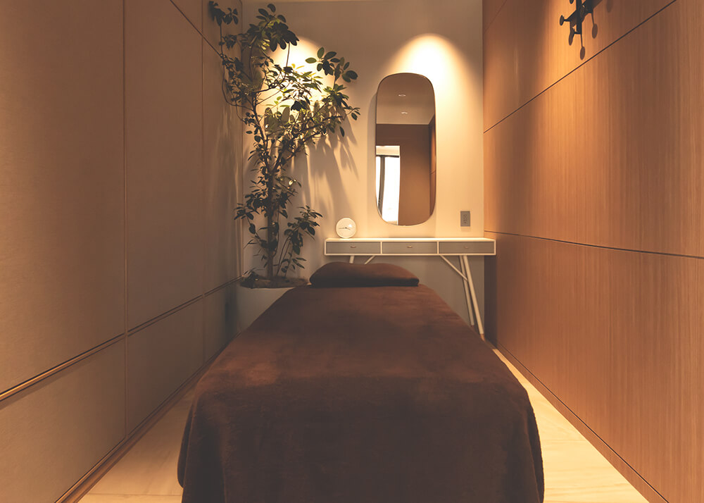 ナチュラルな素材のインテリア空間で、施術前後のひとときを